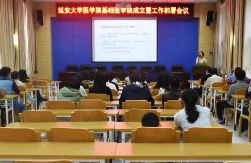 新任基础医学院副院长张正祥、岳昌武分别就各自分工安排了基础医学院近期的本科教学、研究生教学、科研及学科建设方面工作。基础医学院院长杨彦玲在总结发言中介绍了基础医学院机教学构设置和学院基本情况,规划了学院建设和发展蓝图,并制订了近期和远期建设计划。她指出,基础医学院将围绕五个“计划”开展工作,以基础医学学科建设为龙头,全面提高人才培养质量为核心,本科专业建设为基础,硕士点建设为支撑,不断推动学院内涵式发展。