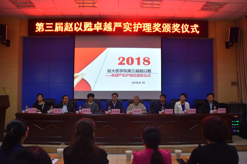医学院2018年赵以甦卓越严实护理奖颁奖典礼在医学院学术报告厅隆重举行。美国工程院院士、中央研究院院士、卓越严实护理奖设立者赵以甦教授,十九大代表、全国向上向善好青年、全国“最美医生”、中国青年五四奖章获得者贺星龙,中南大学湘雅医院大外科总护士长贺爱兰,中南大学湘雅医院创伤、手纤维修复护士长彭伶丽,优秀校友、西安市红会医院总护士长马玉卓应邀参加。我校校长张金锁,医学院院长韩继明、党委书记葛彬,医学院全体院领导及护理专业全体师生参加了颁奖典礼。