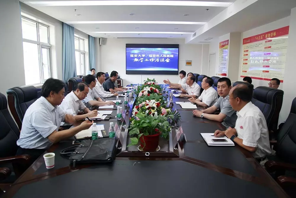 与延安市人民医院教学工作座谈会,座谈会由吴栋副院长主持。蔺广东院长从医院教学投入、师资情况、职称结构、人才梯队、教学运行情况、科研情况等多个方面进行汇报。张金锁校长对第四附属医院的教学给予肯定,并强调要重视师资建设和人才培养,鼓励多元化、多样化的学习形式促进教学;要创新教学模式,从教师主体逐步向学生主体转变;要加强高校与医院的合作,通过教学课题的联合申报、教学成果的资源共享让“小成果变大成果”;要把教学和科研放到医疗的等同位置,真正实现教学促科研、科研反哺教学。