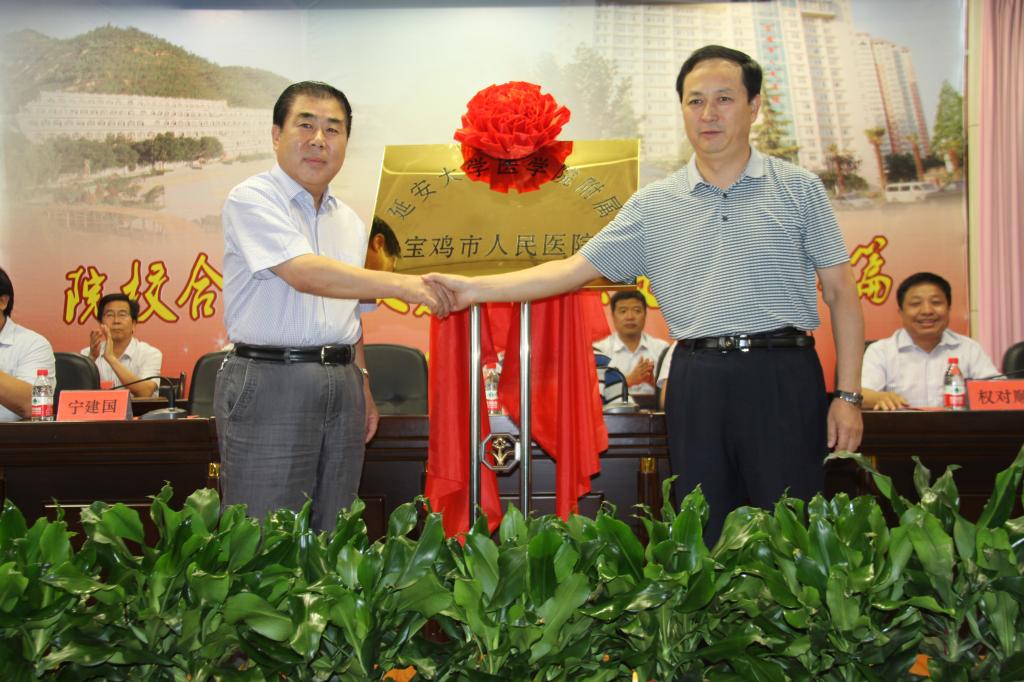 医学院附属宝鸡市人民医院揭牌仪式在宝鸡市人民医院举行举行。陕西省卫计委专员李建光,我校副校长胡俊生,教务处副处长吕磊,医学院院长韩继明,副院长王璐,直属副院长王建清,宝鸡市卫生局局长宁建国,宝鸡市人民医院院长权对顺,以及宝鸡市人民医院医务人员代表参加了揭牌仪式。揭牌仪式由宝鸡市人民医院党委书主记单武强主持。