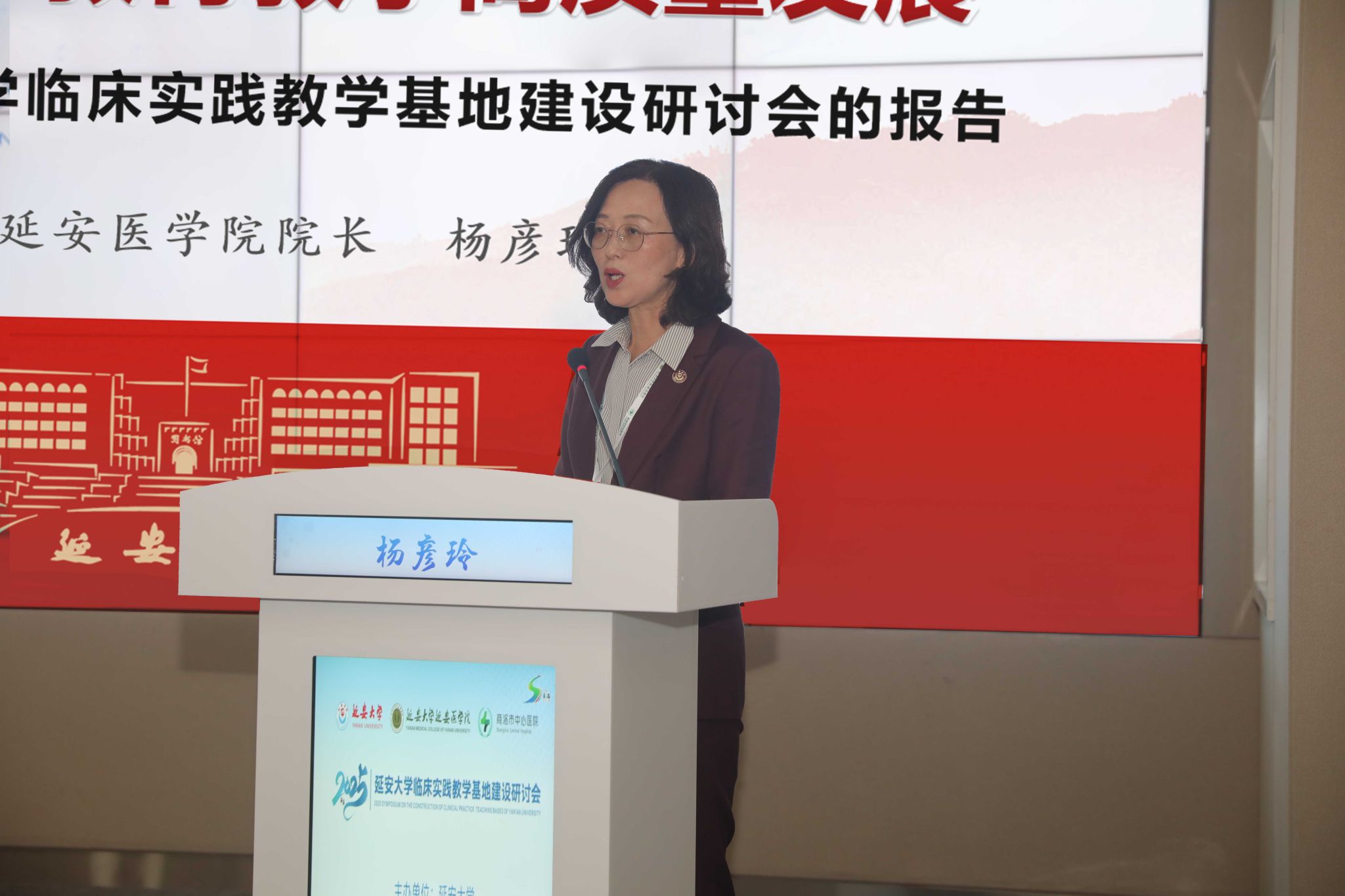 院长杨彦玲主持。商洛市中心医院党委书记李银山致欢迎辞,他向与会嘉宾表示热烈欢迎,并希望以此次会议为契机,深化校院合作,推动医学教育与临床实践深度融合。商洛市卫生健康委员会党组书记、主任马建琦对会议的召开表示祝贺,强调临床教学基地在医学人才培养中的重要作用。