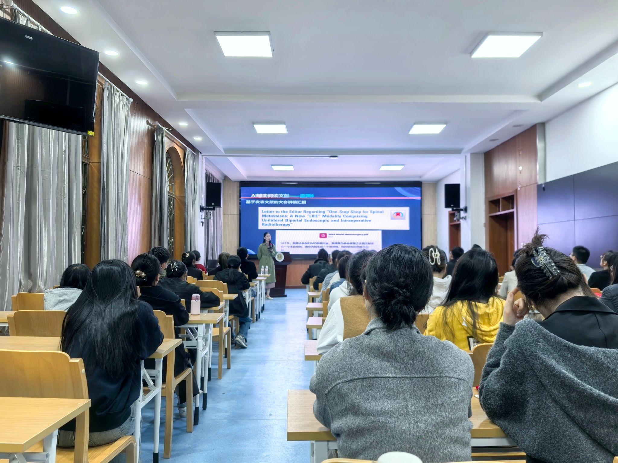 报告会上,何心医生结合自身丰富的科研经验与前沿的学术视角,深入浅出地介绍了人工智能在科研论文写作和课题申报中的应用。她详细阐述了人工智能如何助力文献检索、数据分析、论文构思以及语言润色等关键环节,为研究生们展示了人工智能技术在科研过程中的强大助力。同时,何医生还分享了自己在课题申报过程中的心得体会,包括选题策略、申报书撰写技巧以及常见问题的应对方法,为同学们提供了极具价值的指导。