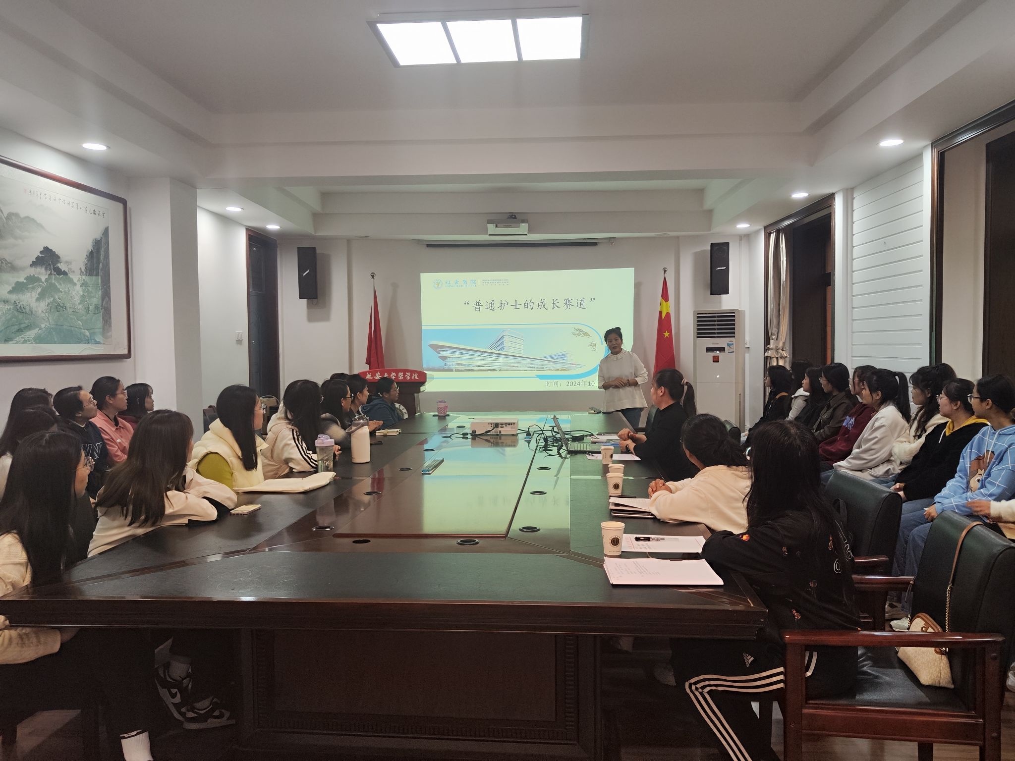 首先,边老师介绍了两位优秀校友的工作履历。随后,张妮护士长以“以心为灯,照亮医路前行”为主题,为同学们展开交流分享。她鼓励同学们要明确方向,不断提升自己,对自己有清晰的定位,掌握学习各种护理技能。通过与同学们交流互动的方式,分享了她自己的工作学习经历,也为同学们提供了宝贵的经验和建议。