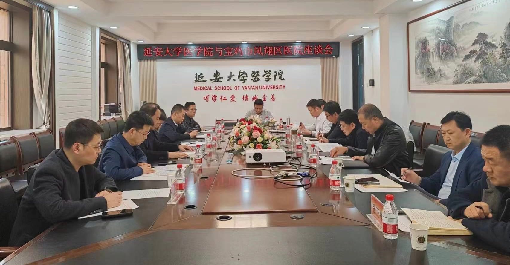 历史沿革、人才培养、科学研究和发展现状等方面做了介绍。韦灏介绍凤翔区医院基本情况及来访交流目的。双方就医学科研平台建设经验、教学医院建设、研究生学历提升培养等内容展开。会议强调了希望双方能够进一步扩展合作内容,提升合作层次,实现共享资源、优势互补,提升合作成效,实现互利共赢。