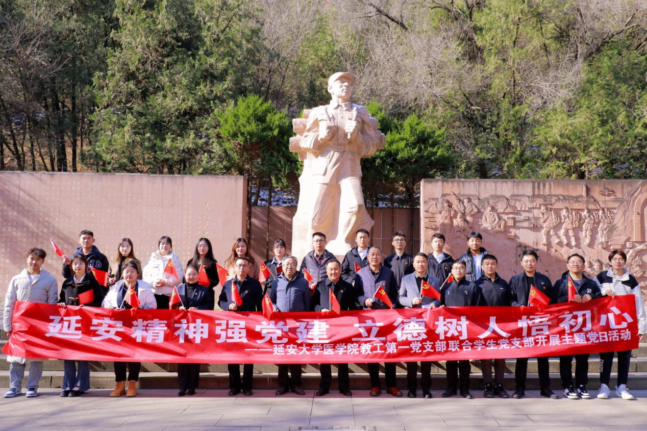 教工第一党支部联合学生党支部在张思德“为人民服务”讲话台纪念广场开展了“延安精神强党建,立德树人悟初心”主题党日活动。