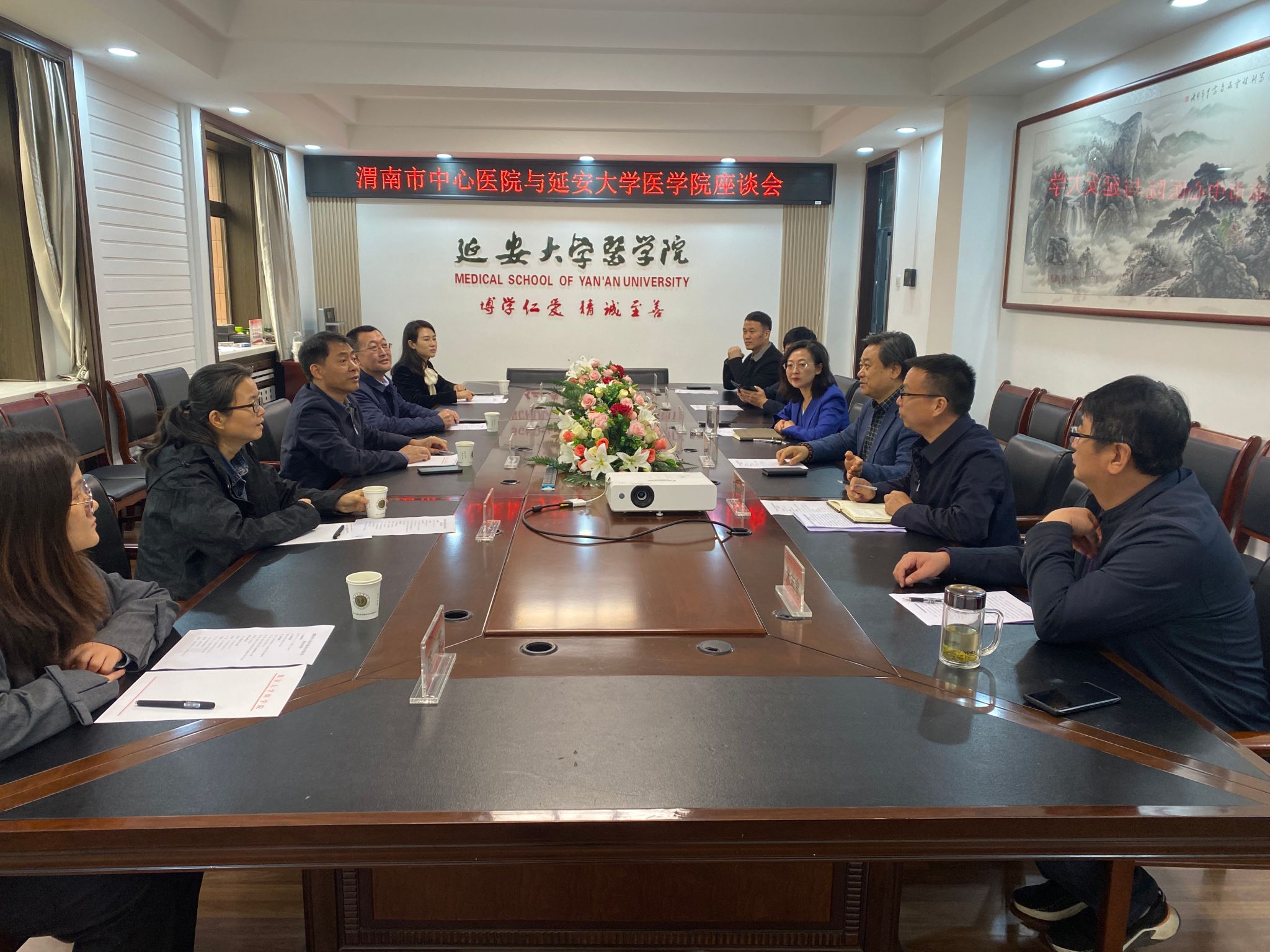 会前,渭南市中心医院一行与谭虎娃副校长进行了交流会谈。