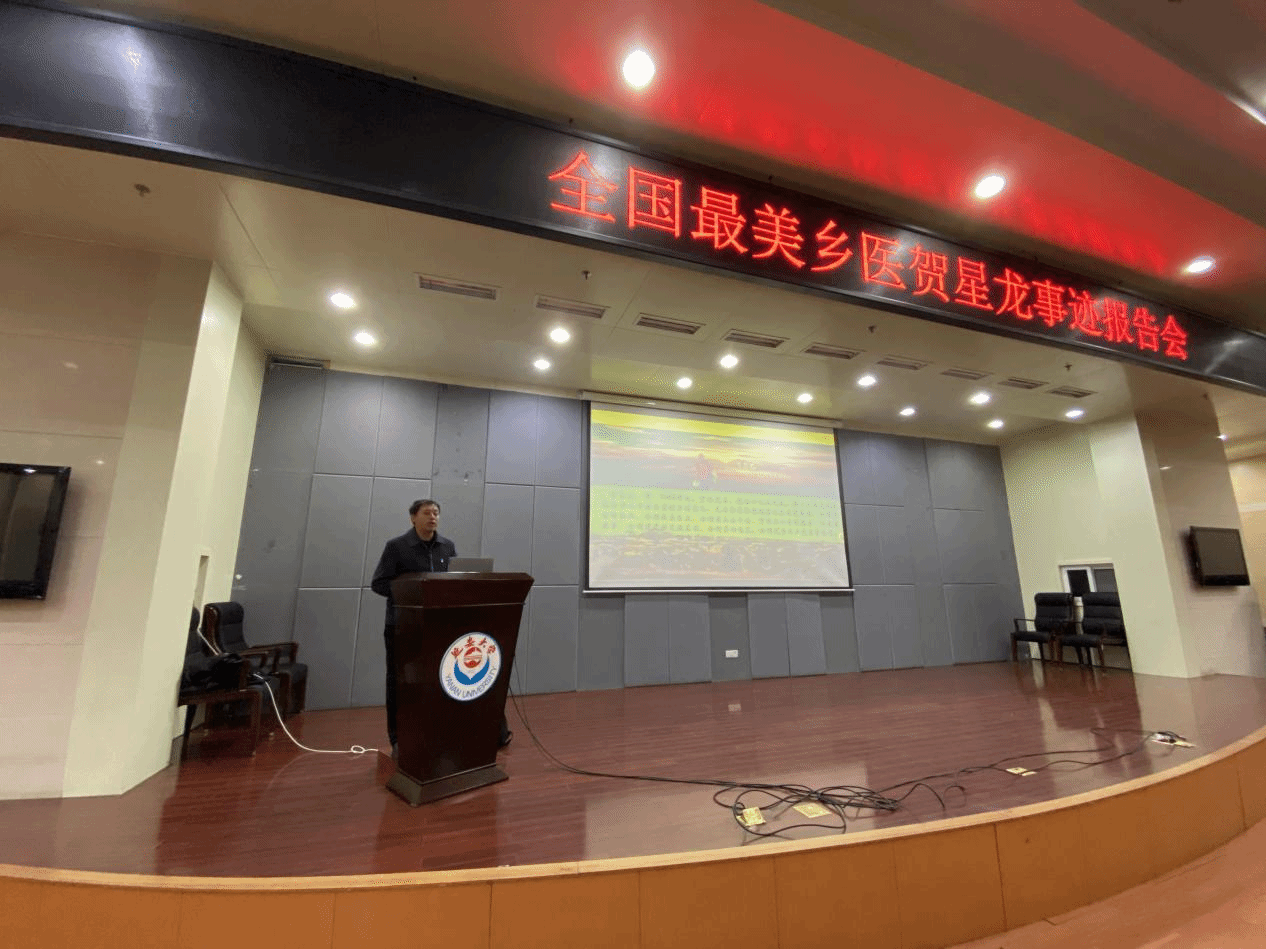 邀请“白求恩奖章”、全国“劳动模范”“中国医师奖”等荣誉称号获得者贺星龙医师于杨家岭校区图书馆十楼报告厅开展先进事迹报告会,全体在校订单定向医学生及部分师生代表共计300余人聆听了报告,报告会由医学院党委副书记罗世乾主持。