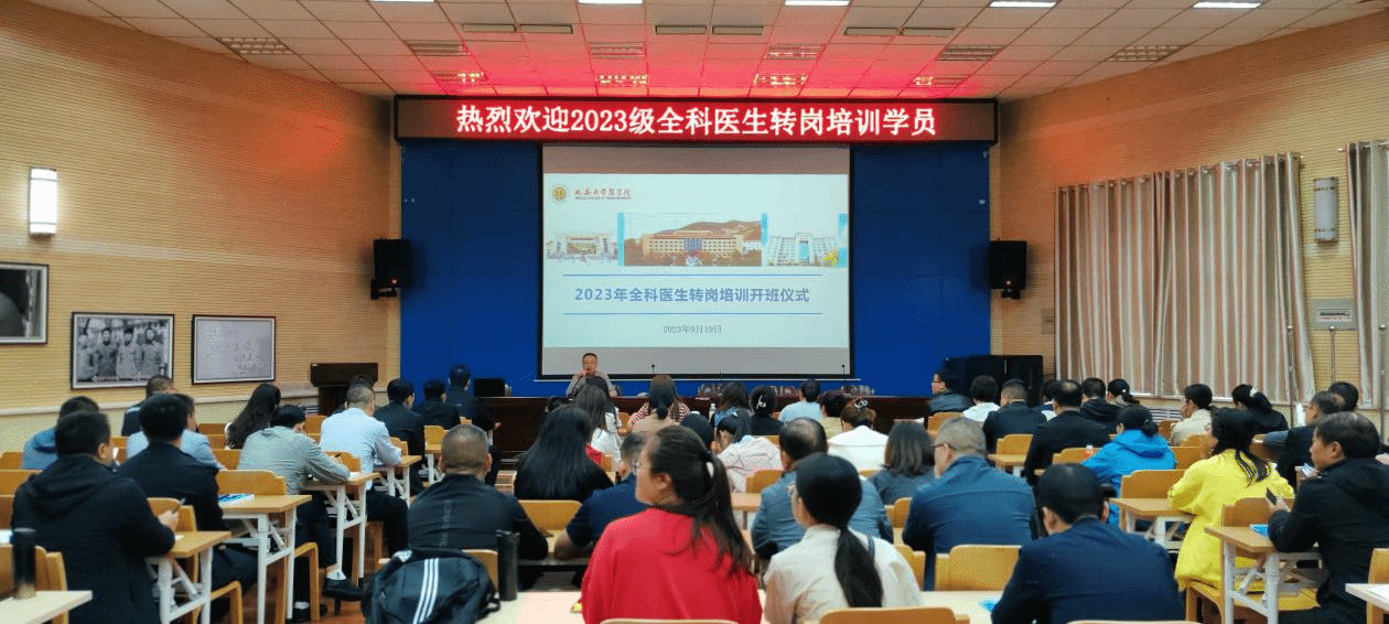 于9月19日在路遥学术报告厅举办2023年全科医生转岗培训开班仪式,医学继续教育中心主任杨加周、班主任李荣华及来自延安、榆林19个县区105名全科医生转岗培训学员参加了仪式。开班仪式由医学教育教育中心主任杨加周主持。