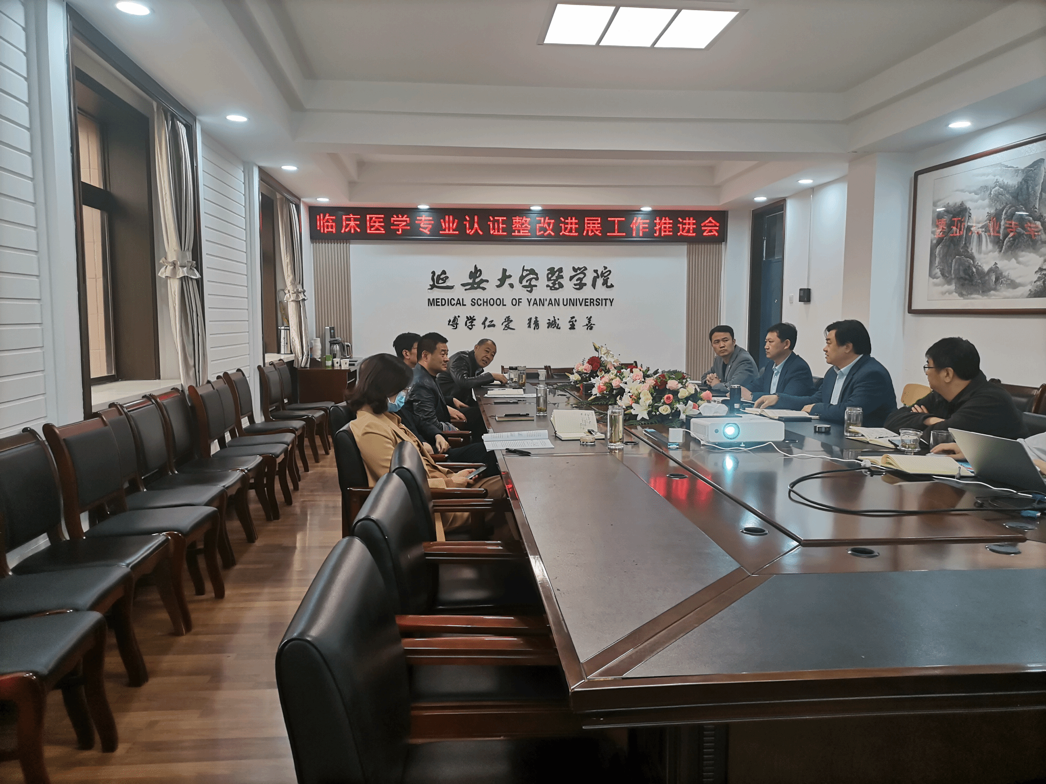 在杨家岭校区逸夫楼304会议室召开了临床医学专业认证整改进展工作推进会。医学院全体处级领导参加会议。会议由韩继明院长主持。