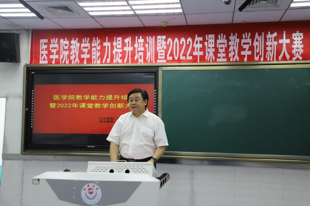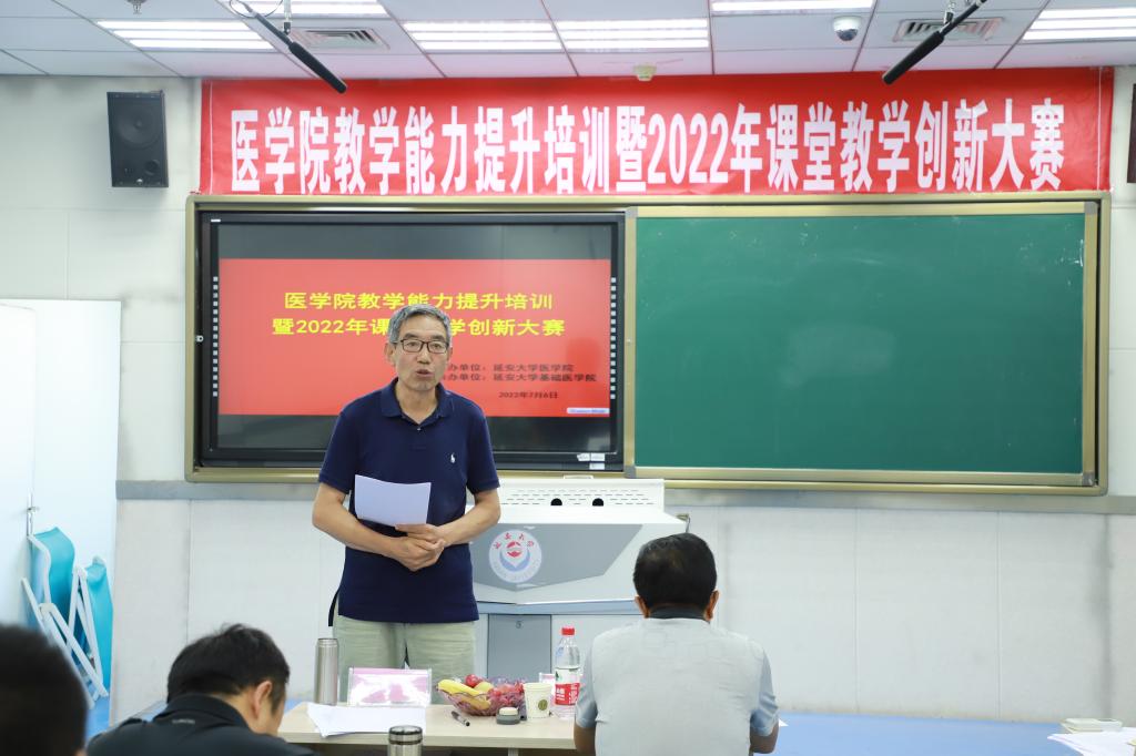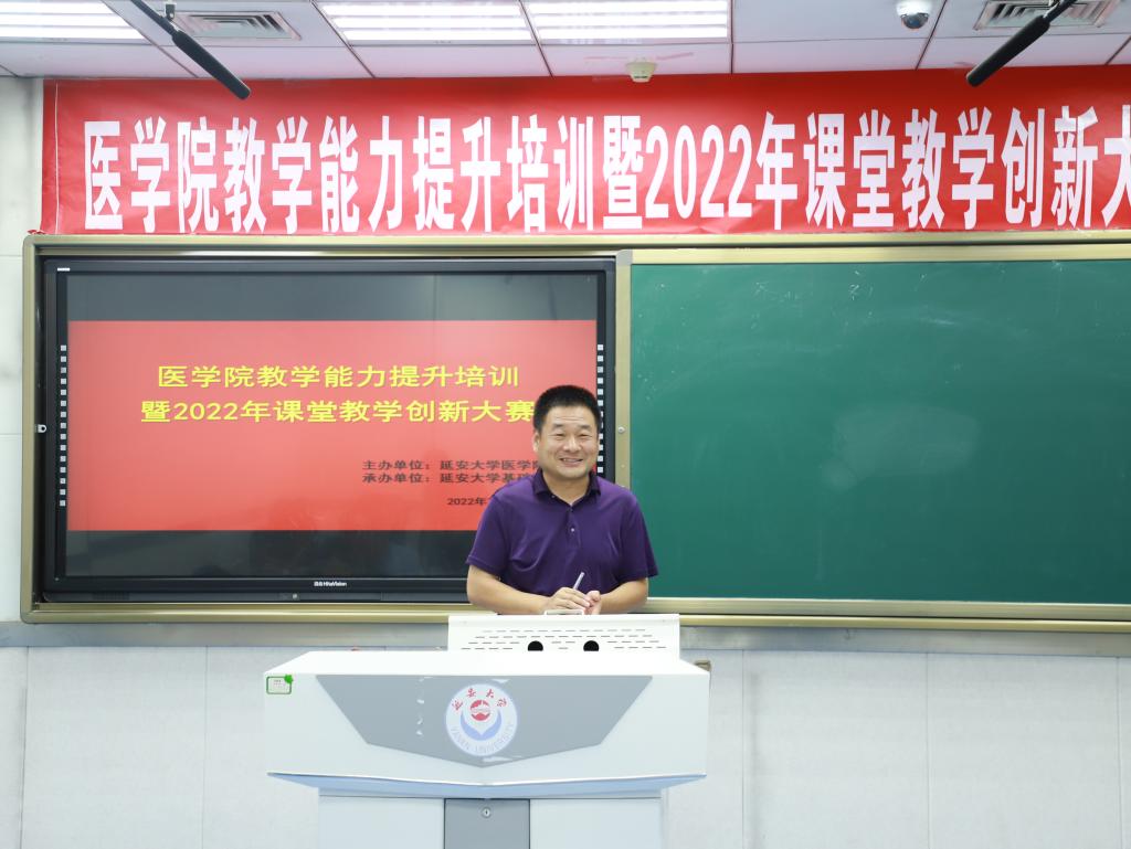 大赛开幕式由医学院副院长、基础医学院院长杨彦玲教授主持。医学院院长韩继明教授在讲话中指出,举办课堂教学创新大赛旨在有效促进教师教学能力提升,希望老师们能够以此次比赛为契机,积极深化教学改革,推动课堂教学从“以教为中心”向“以学为中心”转变,以知识传授为主向以能力培养为主转变,认真总结现有教学成果,在学院范围内推广应用,形成示范课程,引领课堂革命,提高教学质量。接着,医学院副院长刘晓斌宣读了比赛规则、评分标准和奖励办法。
