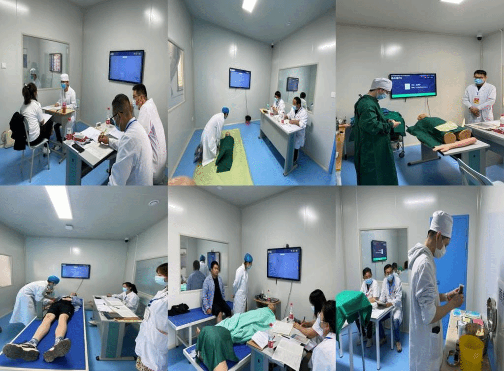 为确保此次水平测试的公平、公正、科学、规范进行,共遴选了83名考官、招募了142名学生志愿者和9个标准化病人(SP)及医学院、数学与计算机科学学院和网络信息中心部分教师共同参与工作。考官均从第一临床医学院、第二临床医学院、第三临床医学院、第四临床医学院进行遴选,这也使各附属医院教师提前熟悉考试流程,为后期在各附属医院设立考点打下基础。考前按照疫情防控要求,制定了《关于做好2022年临床医学专业(本科)水平测试工作的通知》,且严格按照国家医学考试中心发布的各项工作完成时间节点,逐步有序开展考试流程设计、考官遴选、考场分布、考试材料准备、志愿者招募和培训、考官培训、技术人员培训、SP培训、压力测试、模式演练等各项工作,确保各环节考试圆满完成。