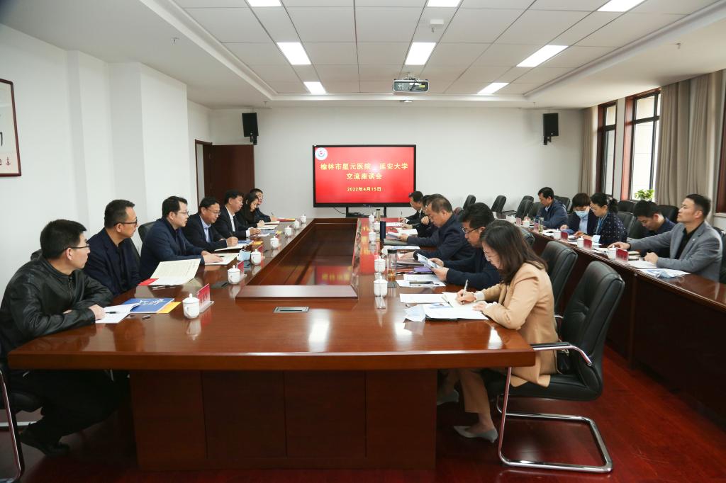4月15日上午,榆林市榆阳区卫生局局长陈虎平、榆林市星元医院党委书记、院长王建睿等一行6人赴我校考察交流工作。副校长武忠远、付峰,校长办公室、科研处、对外交流与合作处、研究生院、医学院、附属医院等部门负责人参加了座谈会,座谈会由副校长付峰主持。
