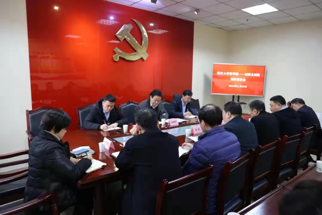 院长韩继明,教务处副处长、医学院教学办主任高枫,校办副主任、医学院办公室主任高曙光一行三人赴城固县医院,对其教学医院建设情况进行调研指导。县卫健局党组成员、副局长杨睿,县医院党委书记张永祥,党委副书记、院长朱宏升等人陪同。