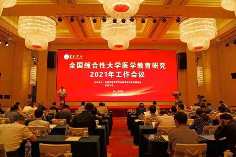 为建设高质量教育体系,推动医学教育创新发展,6月5日上午,由中国高等教育学会医学教育专业委员会和吉首大学共同主办的全国综合性大学医学教育研究2021年工作会议在湖南省吉首市开幕。中国高等教育学会医学教育专业委员会副会长吕兆丰,综合性大学医学教育研究学组组长、佳木斯大学党委书记邱洪斌,吉首大学党委书记白晋湘,中国高等教育学会医学教育专业委员会常务副秘书长郭立和来自48所全国综合性大学的116名领导和专家参加了开幕式。我校医学院院长韩继明、教务处副处长兼医学院教学办主任高枫,校办副主任兼医学院综合办主任高曙光等参加了会议。