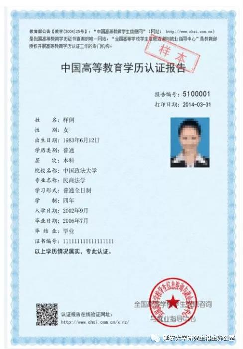 2.对于往届考生,网报学历校验通过的,只提供毕业证书照片;网报学历校验未通过的还须提供“中国高等教育学生信息网”的《教育部学历证书电子注册备案表》或《中国高等教育学历认证报告》。示范照片如下: