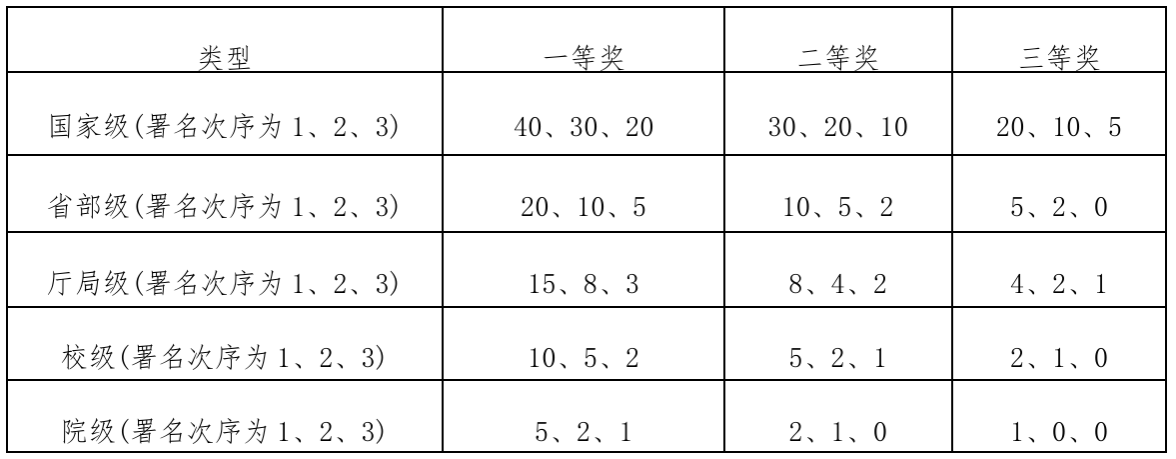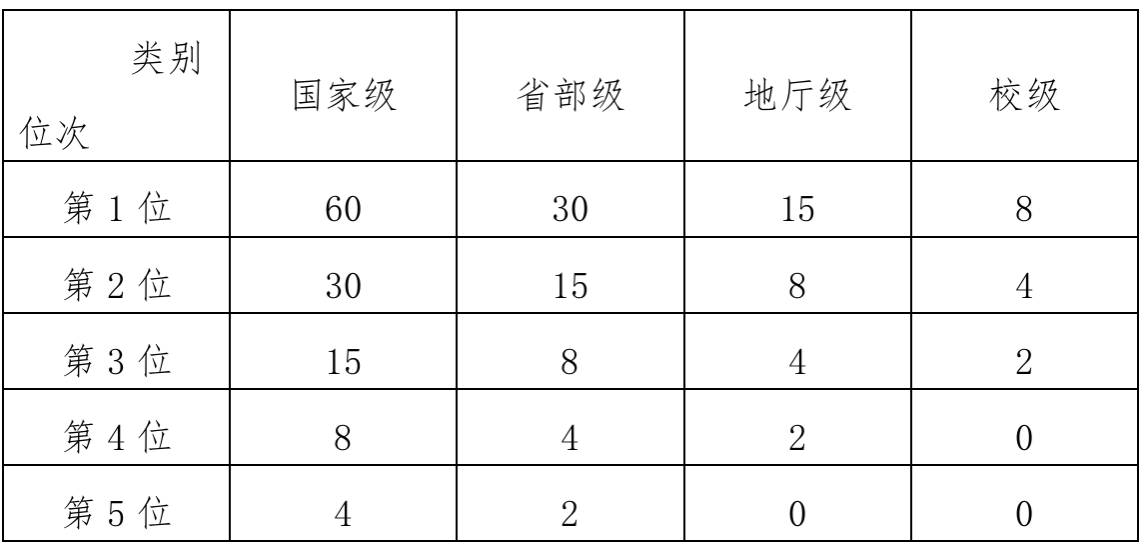 5.科技竞赛量化分值如下图(仅统计实际排名前三位置):