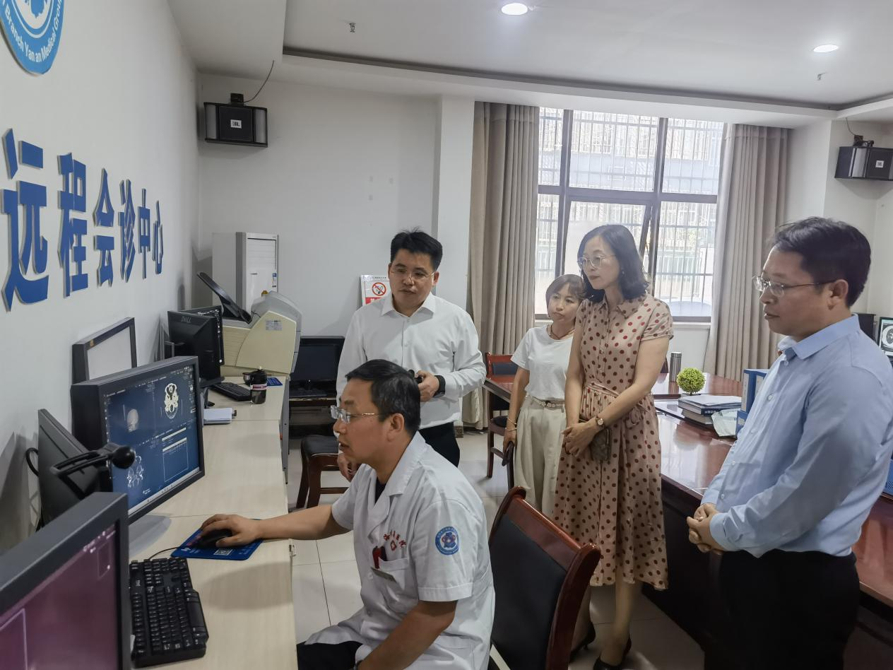 调研组首先实地考察了洛川县医院的放射科远程会诊室、康复理疗室、血液透析室、B超室、重症监护室等关键科室区域。白东昱向调研组全面详细地介绍了医院的整体运营状况以及托管工作的开展情况。