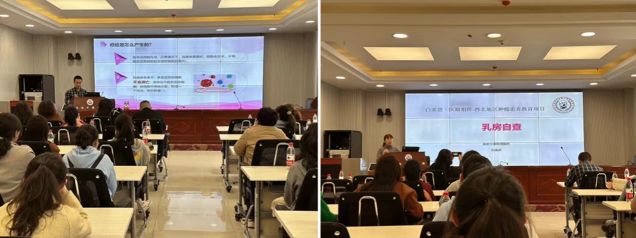 附属医院甲乳科主任张生军主任医师、姬乐副教授以及刘春丽护士长在医学院范围内开展了以“关爱女性,关注乳腺健康”为主题的知识讲座。