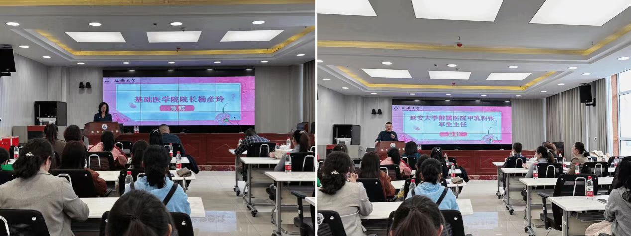 基础医学院院长杨彦玲代表医学院向女教师表示亲切的慰问和崇高的敬意,希望广大女性树立终身学习的新理念,更好地履行教书育人的职责,承担新时代赋予的光荣使命,踊跃投身创新创业一线,充分施展才华、建功立业,彰显延医女性爱岗敬业、创新进取、奋发有为的巾帼风采。其次,延大附院甲乳科张生军主任简述了乳腺疾病预防和治疗的重要意义,并倡议广大女职工关注乳房健康,提高自我保健意识。接下来,医学院教职工王逢会副教授代表全体医学院女职工对延大附院的老师们表示了欢迎,高度赞扬了91短视频