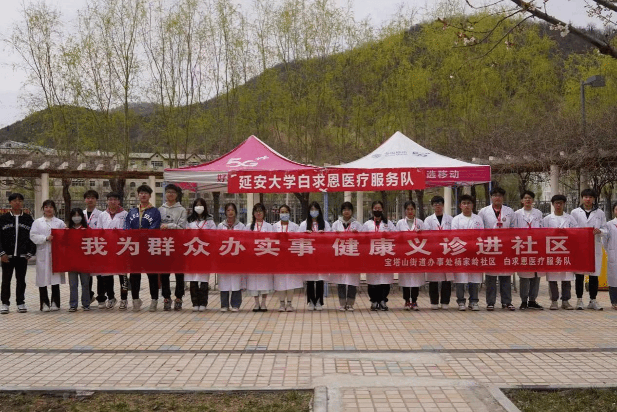 “白求恩”医疗服务队走进雅苑小区开展义诊活动。医学院党委副书记罗世乾、辅导员、宝塔山杨家岭社区相关负责人参加此次义诊活动。