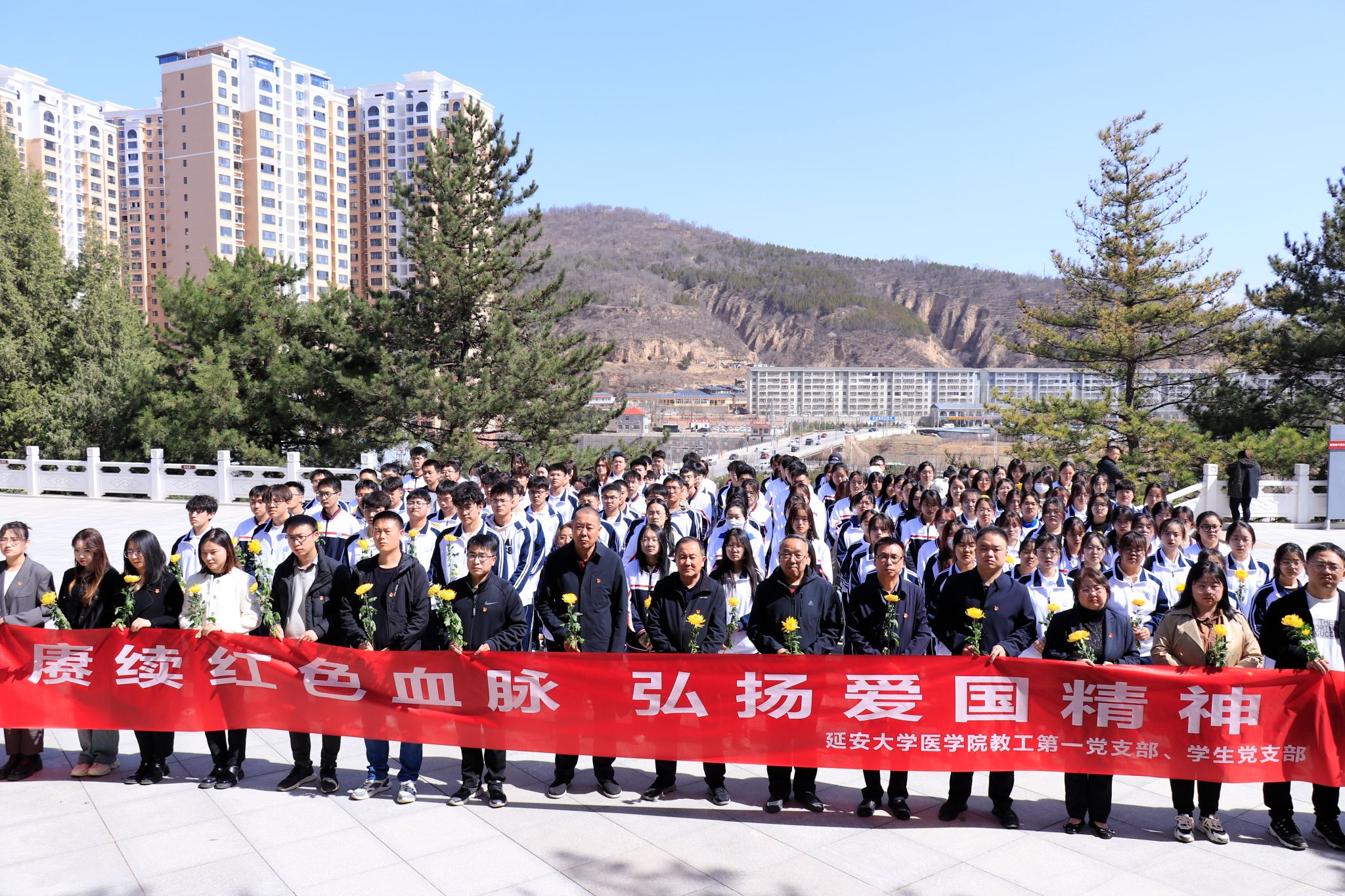在延安“四·八”烈士陵园举办“赓续红色血脉,弘扬爱国精神”清明祭扫活动。医学院教工第一党支部、学生党支部、本科生及研究生代表200余人参加本次祭扫活动。活动由医学院教工第一党支部书记高曙光主持。