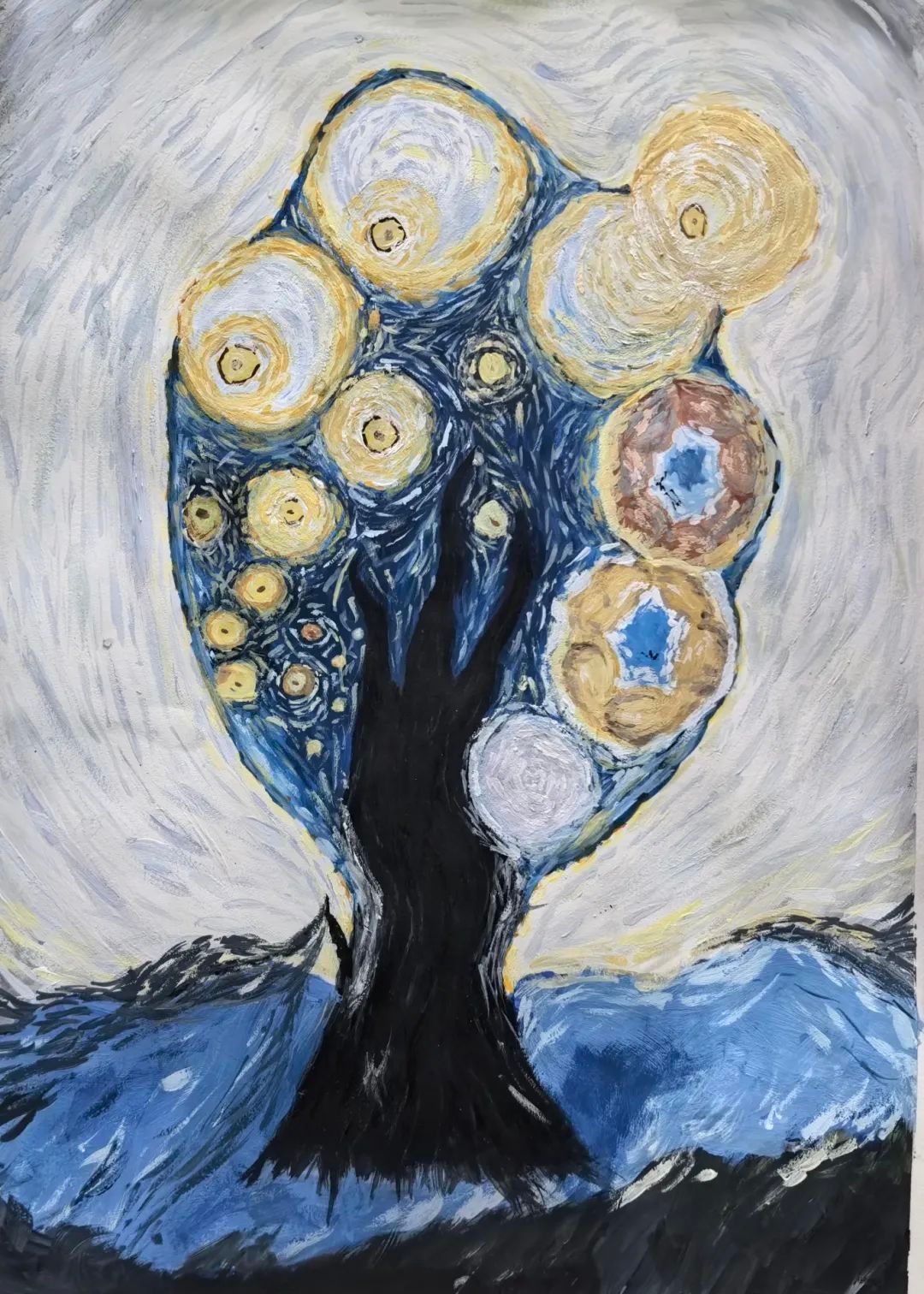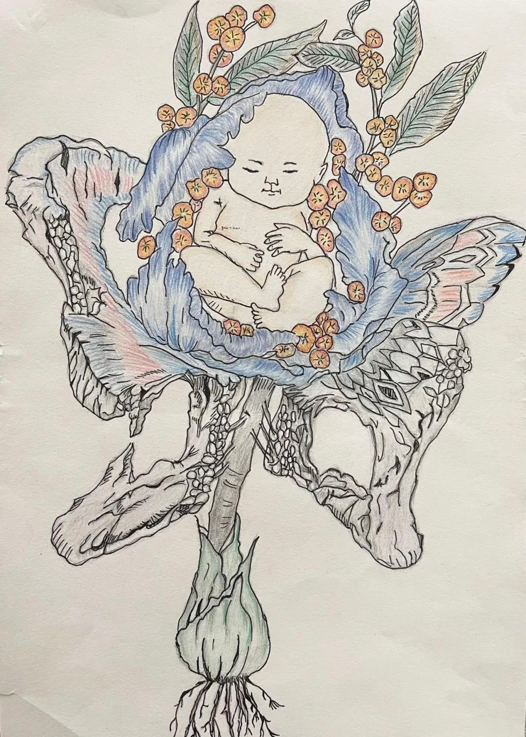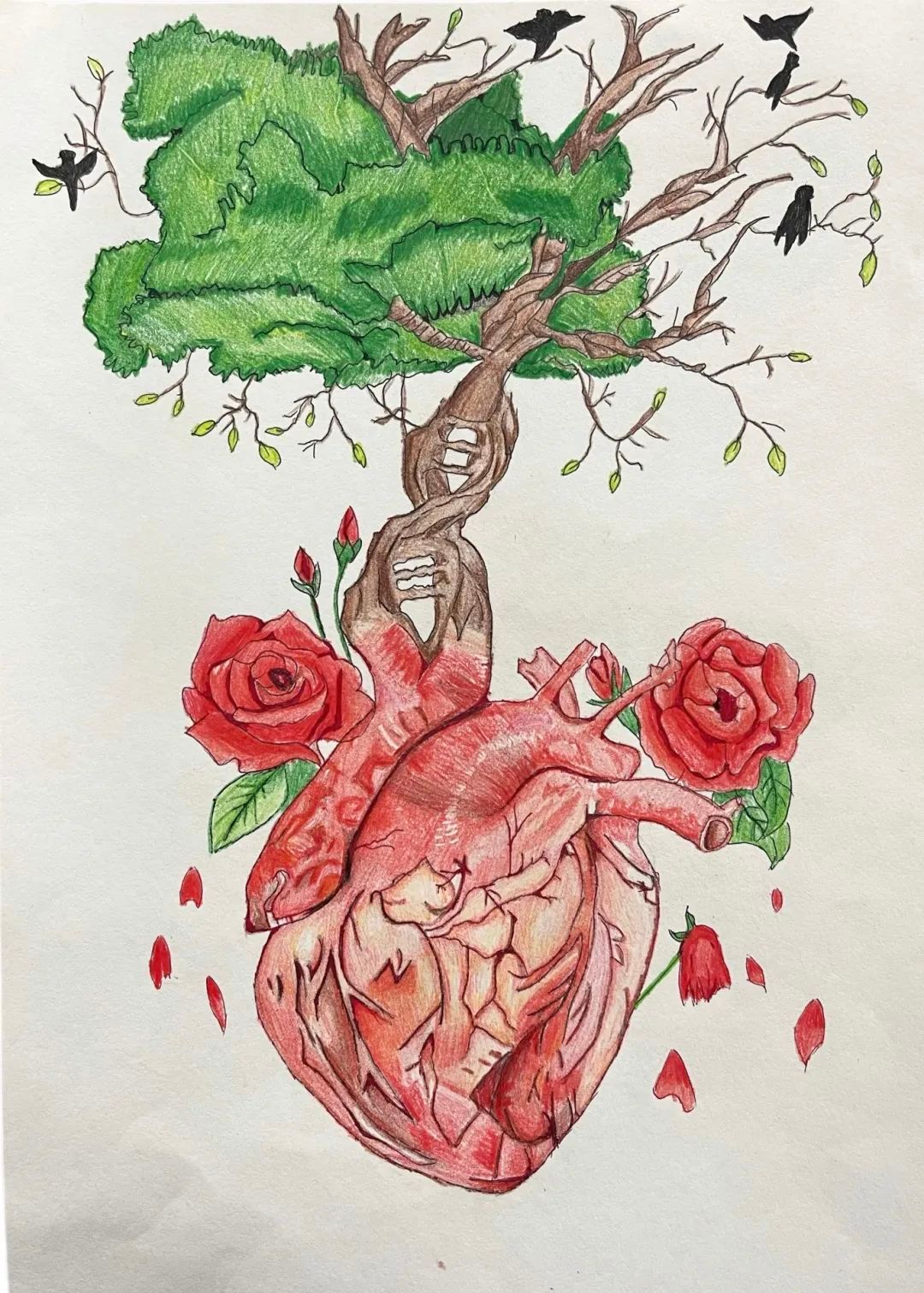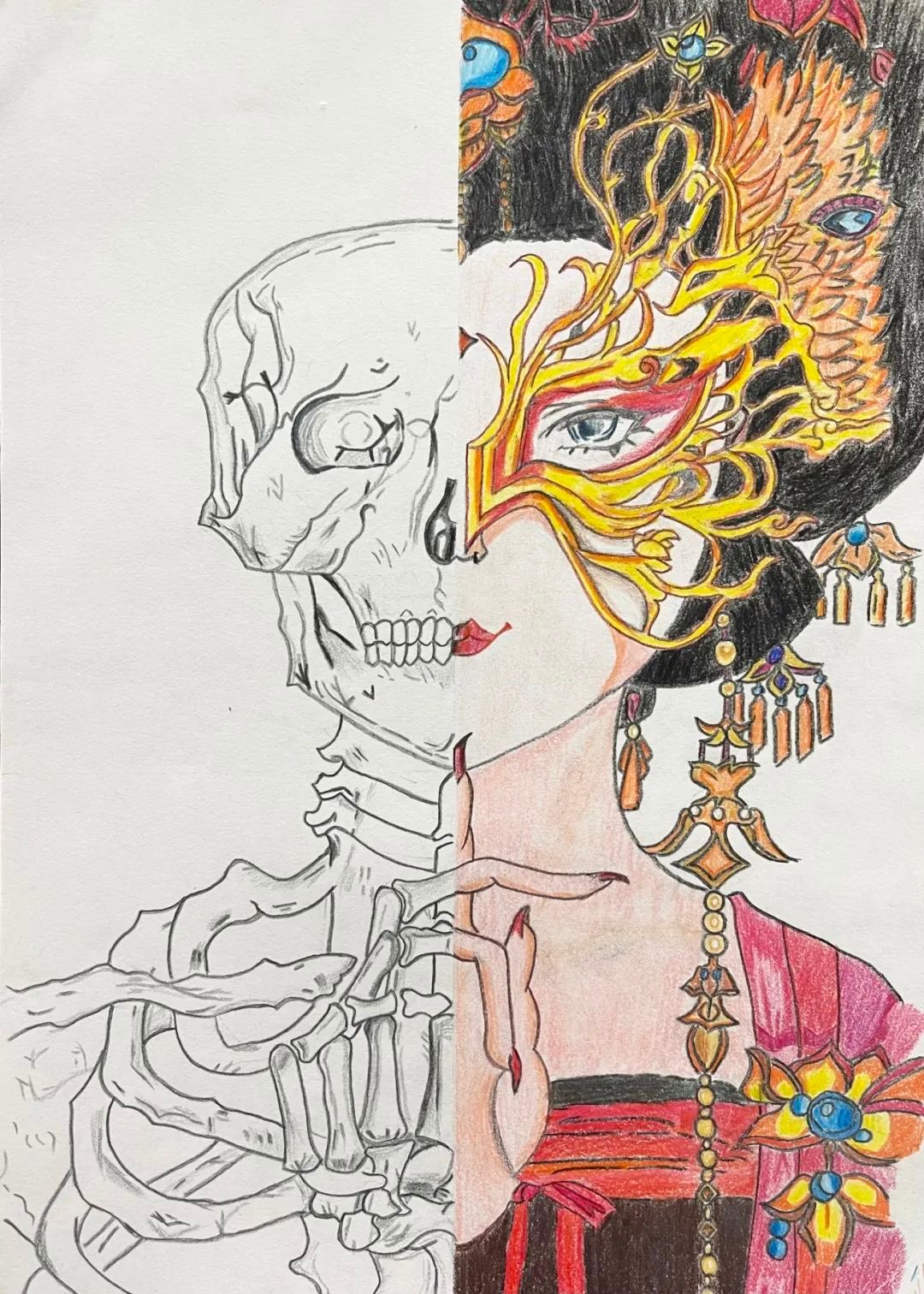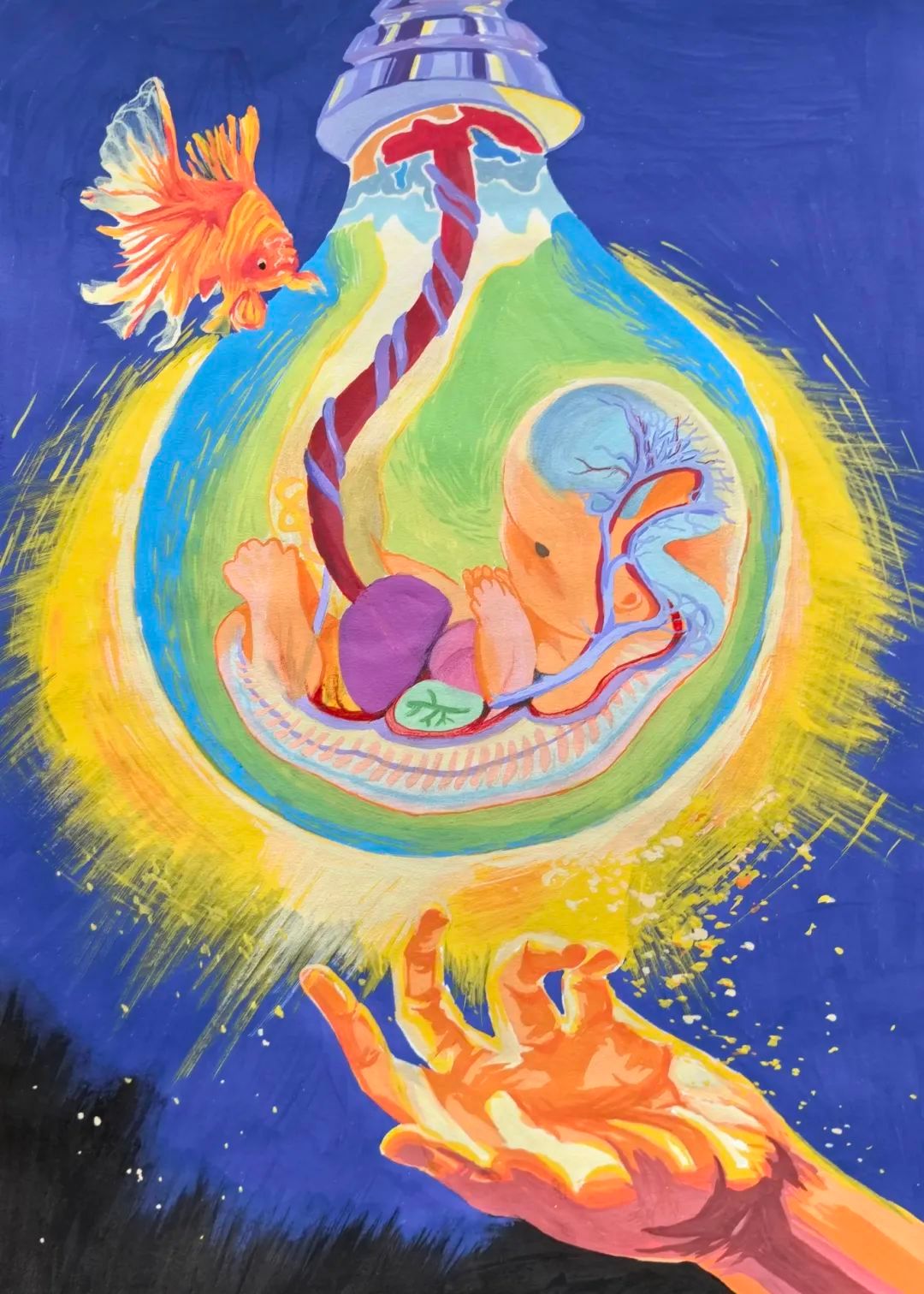 特等奖获得者乔心蓥同学向我们讲解了她的创作过程。她表示《双生》的灵感来源于自己对医学与绘画感悟。“很多时候能不能做好一件事,靠的不完全是专业能力,更要看用心程度。”这不仅是是她的创作主旨,更是她人生的座右铭。