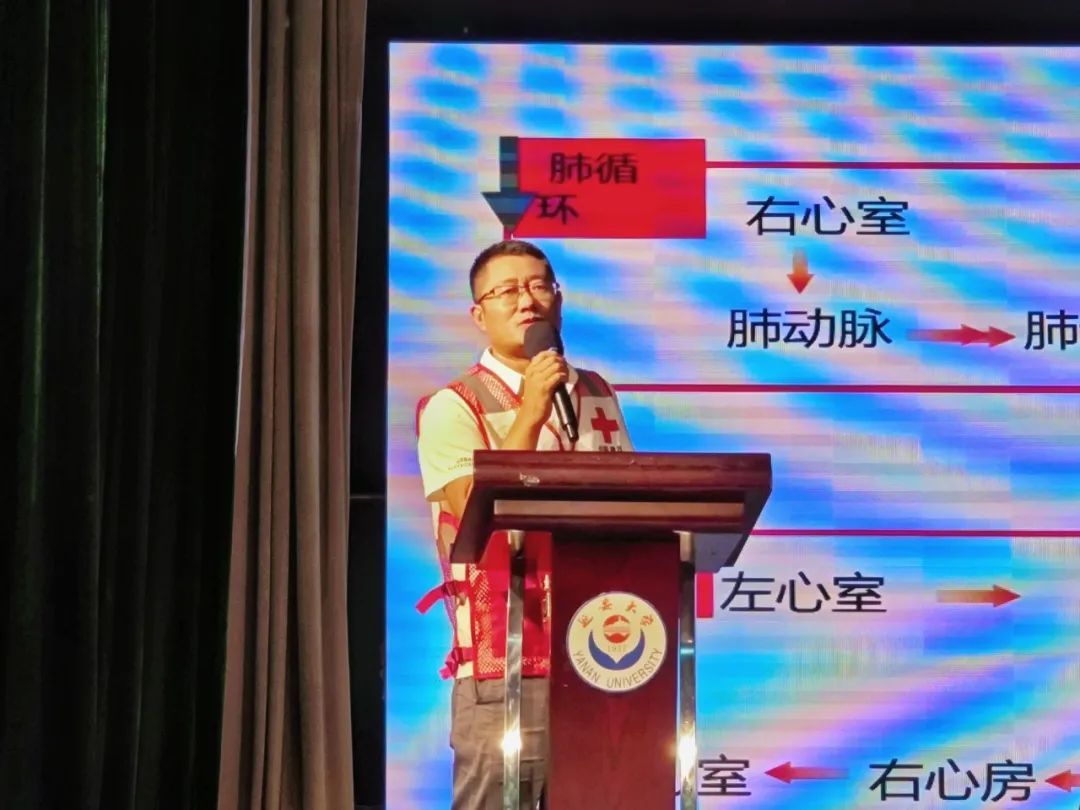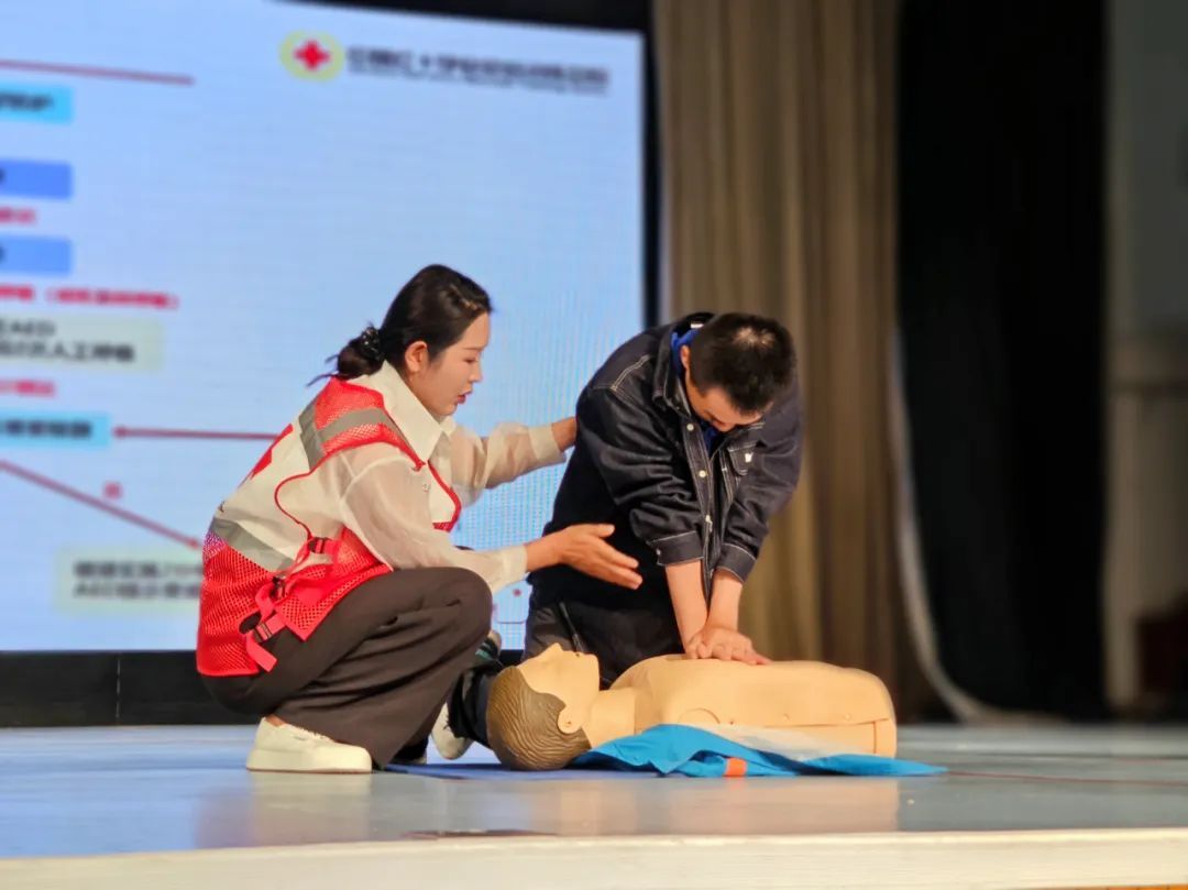 在杨家岭校区大礼堂举办2024级新生入学教育,开展学习基础医疗知识和基本救援技能讲座。