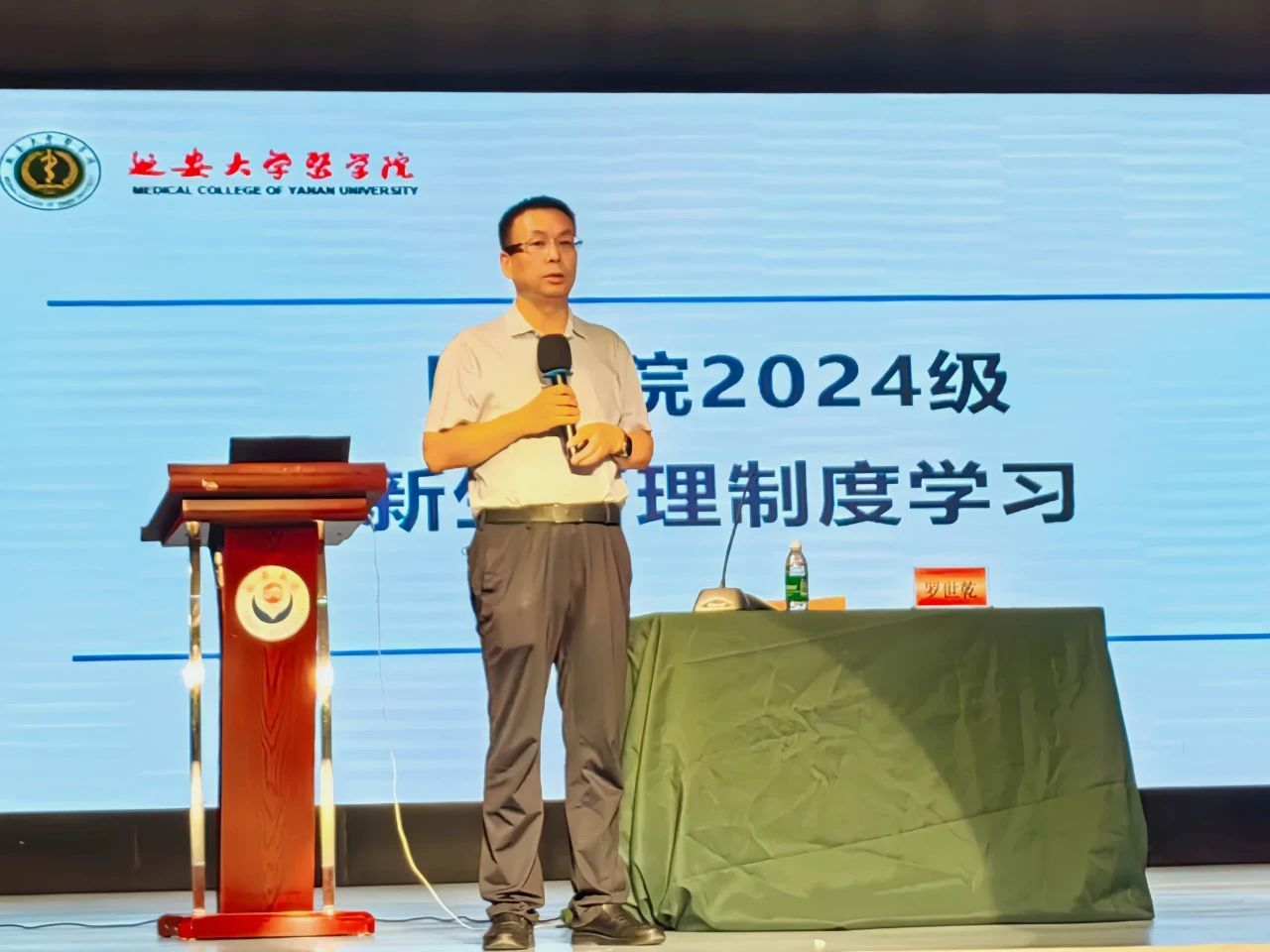 首任院长,陕北医学教育的奠基人--马霄院长的光辉事迹。她以生动的语言将马院长在医学领域的卓越贡献、不懈追求以及对后辈的殷切期望一一呈现在每位新生面前,让在场的每一个人都能感受到那份源自灵魂深处的震撼与敬仰。