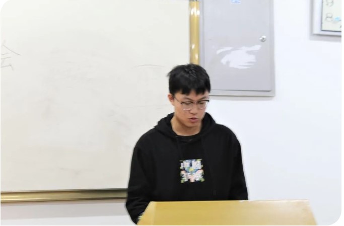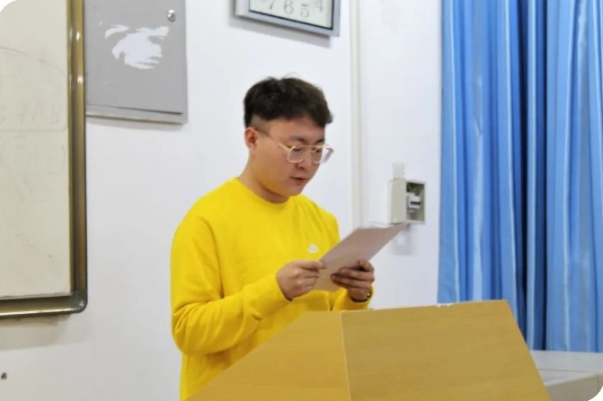 学生会副主席王景玄同学作述职报告。他将自己负责的两个部门——文艺部与办公室过去一学期举办的活动简要概括,由个人层面上升到整个学生会,并对未来一学期中学生会将进行的工作提出设想,胸有成竹,斗志昂扬。
