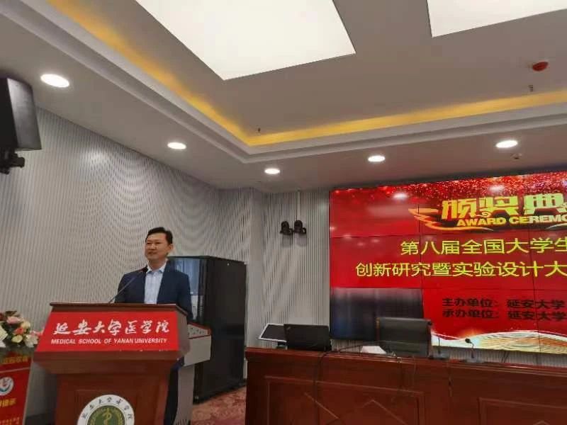 教务处处长吕磊宣读比赛规则,保证比赛公平公正,真正选拔出优秀的参赛作品。医学院院长韩继明指出,本次大赛顺应了时代背景,体现了院校对于创新人才培养和医药卫生事业发展的极大重视。随后,临床19级苏夏雨同学作为参赛学生代表发言。
