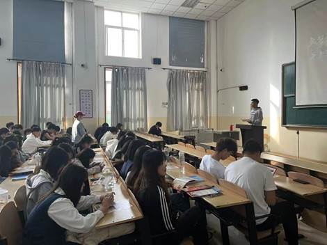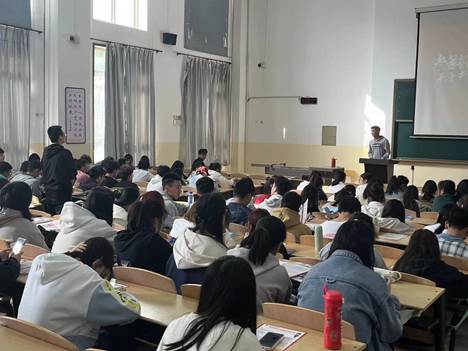 退伍复学军人段强在麻醉22-1和麻醉22-2班进行征兵政策宣讲和部队生活感悟分享