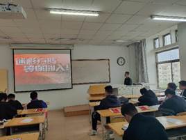 医学院退伍复学军人刘开聪、孙嘉雯、武琪琪、张萌、杨维洲、段强、杨天乐、姚嘉宝、赵文斌进班级进行征兵政策宣讲,部队生活感悟分享。