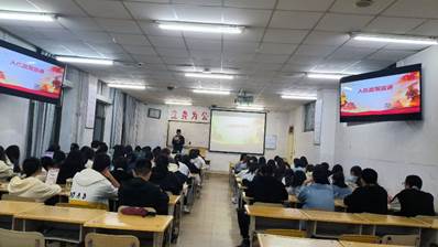 退伍复学军人张萌在临床22-1和临床22-2班进行征兵政策宣讲和部队生活感悟分享