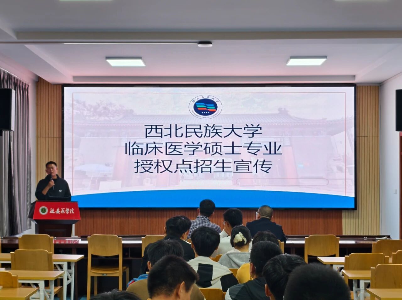 开展硕士招生专题宣讲。本次活动由西北民族大学医学部胜利教授与王云龙教授联合主讲,围绕院校概况、招生政策与培养优势等内容进行了系统介绍,本次活动由辅导员陈世荣老师主持。