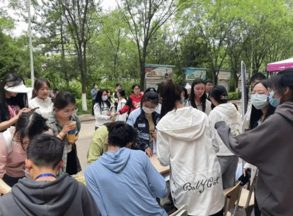 活动现场热闹非凡,过往的同学纷纷被精彩有趣的活动所吸引。在工作人员的组织和引导下,同学们兴高采烈地排着队,全身心投入地参与到活动中。